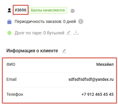 - Информация об активности клиента: Общая сумма, количество баллов, количество сделанных заказов. Важный момент! Сумма и Заказы не учитывают отмененные заказы.