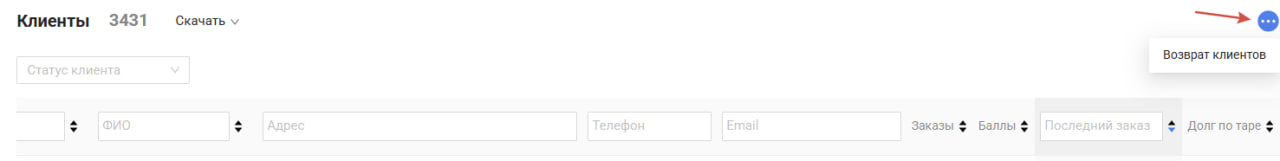 - ФИО (нажав на имя клиента можно перейти в карточку клиента).