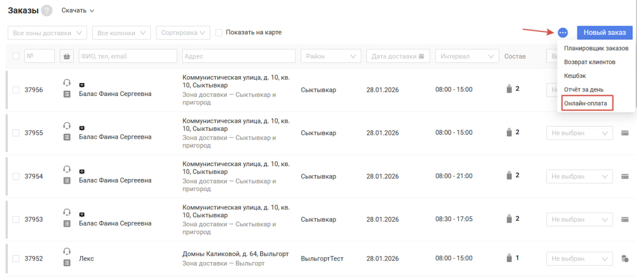 - Перейдите в кабинет заказов в раздел Онлайн оплата.