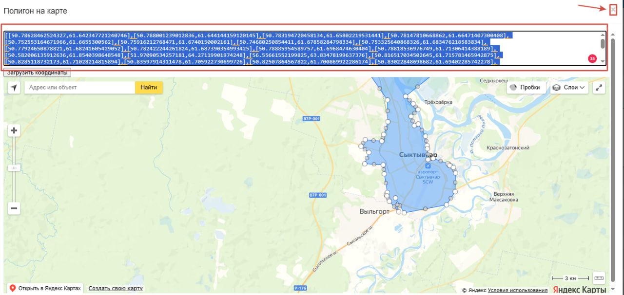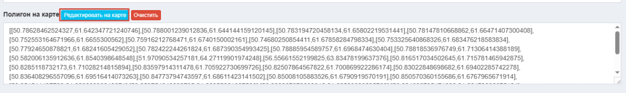 - Вставьте полученные данные в поле «Полигон на карте» (Сочетание клавиш Ctrl + V).